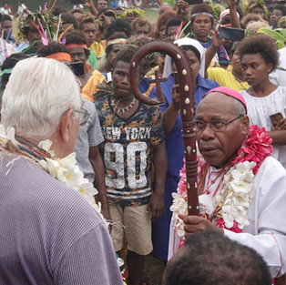 Amidst expressions of gratitude at Vunapope, were tears of appreciation for the much-loved shepherd for the past ten years. “Our thanks are not only in words, but it is expressed in our deeds and through the expression of our gifts”, were constant refrains as shell money and customary gifts of pigs and food were presented to the archbishop.