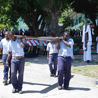 Despite the heat of the scorching sun, the boys stood as an army creating a pathway as the Cross was passed on from one station to the other until the fourteenth station. As the Cross moved on there was singing, prayer recitations and moments of silence for reflection.